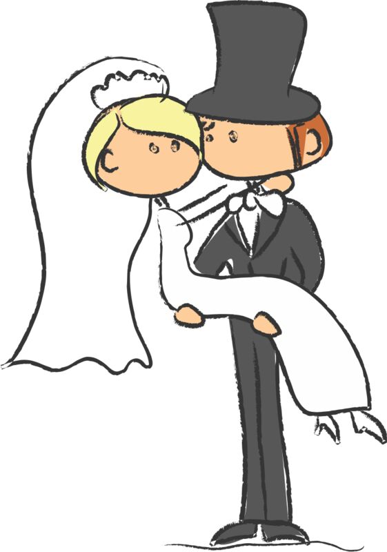 Cartoon Wedding Groom Bride Hug 2